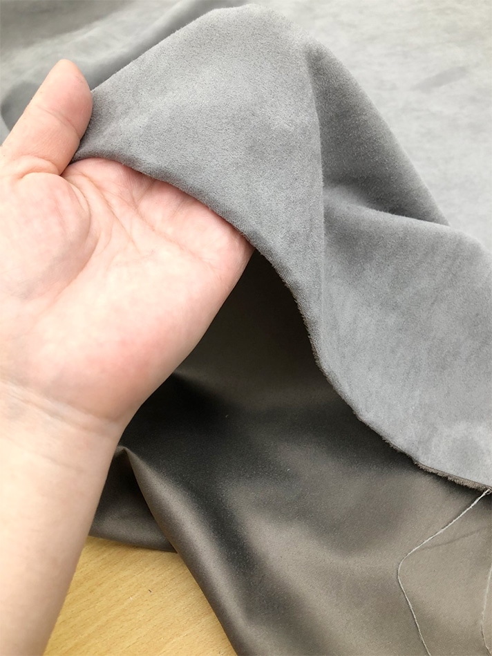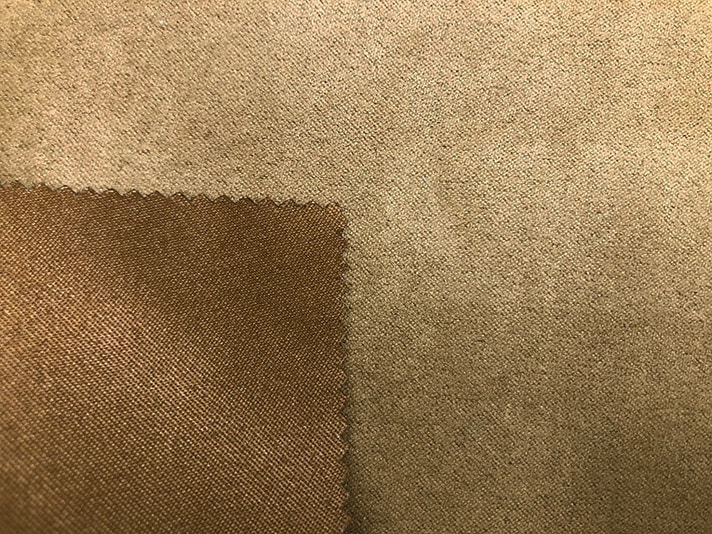 リサイクル原料の割繊糸を使用した繊細な起毛感のスウェード素材。