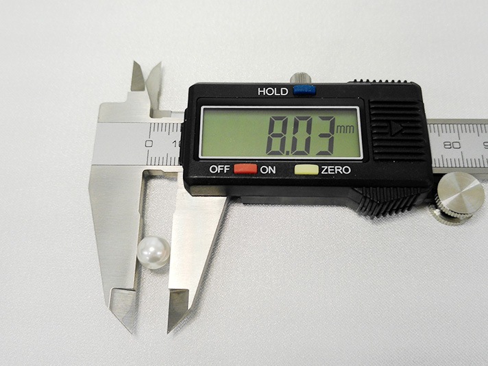 ユリア樹脂の約8mmの穴あきパールビーズです。